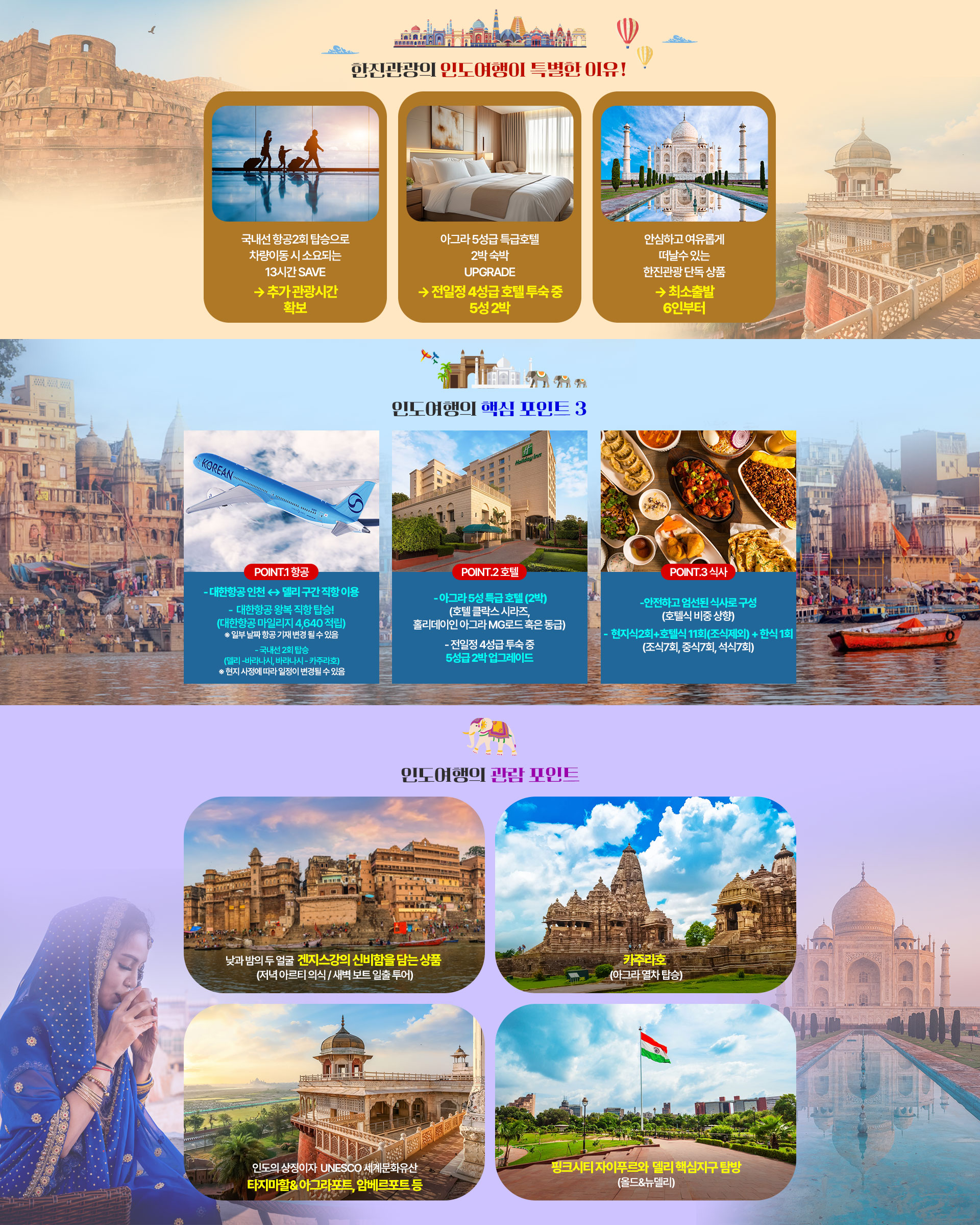 [KE+국내선2회+특급호텔2박] 다채로운 인디아 #여유,낭만# 인도 9일
